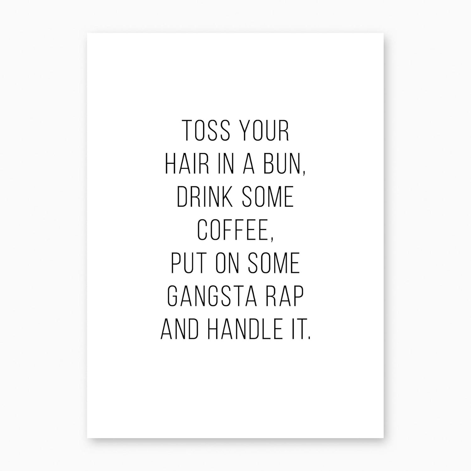 Amazon Com Toss Your Hair In A Bun Drink Some Coffee Put On Some Gangsta Rap And Handle It Thin Font Print Unframed Handmade