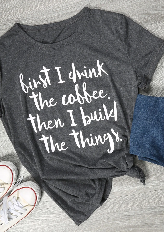 First I Drink The Coffee Then I Build The Things T Shirt 90s Women Fashion Cotton Tops Funny Slogan Tees Grunge Goth Art T Shirt T Shirts Aliexpress