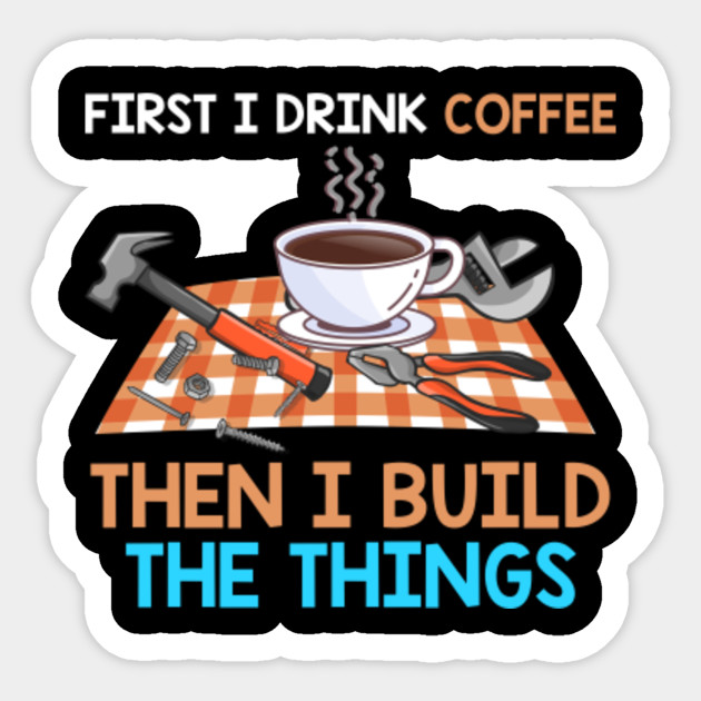 First i drink the coffee then i build the things. Shop first i drink the coffee then i build things custom made just for you. Available on many styles sizes and colors. Buy first i drink the coffee then i build the things sticker.