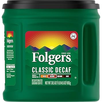 Folgers classic decaf ground coffee has the same aromatic flavor as folgers classic roast coffee but its decaffeinated.