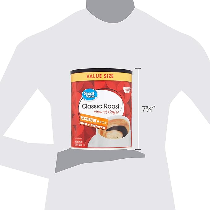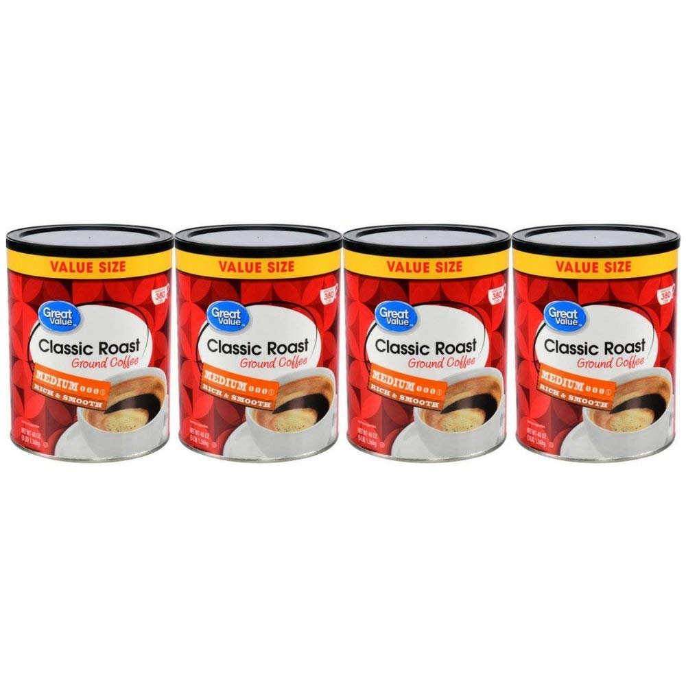 Great value classic roast ground coffee medium roast 48 oz. Product title great value classic roast medium ground coffee value size 48 oz. This ready to go coffee is super easy to make. Each 48 oz container makes up to 380 six fl oz cups.