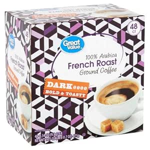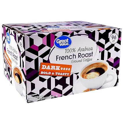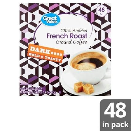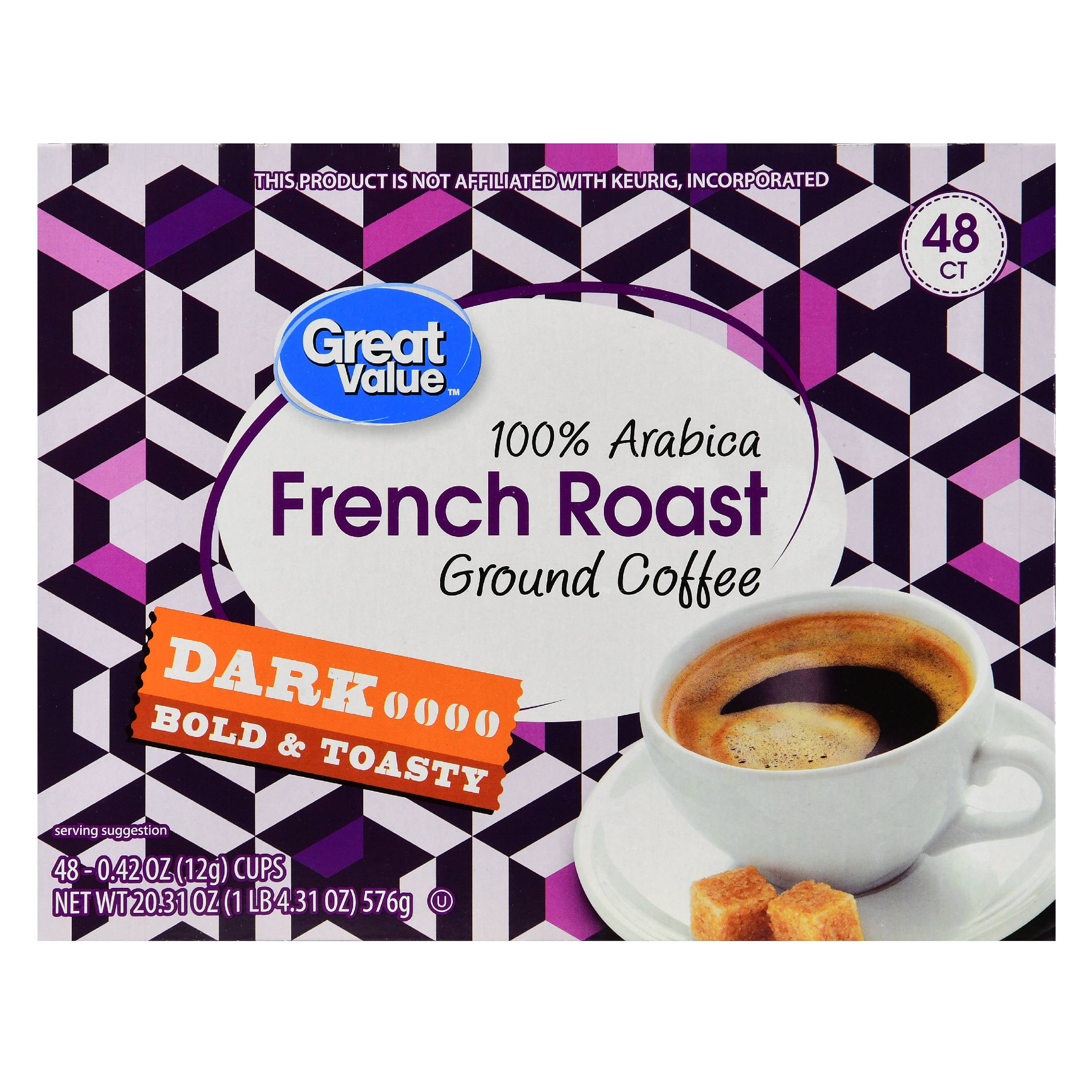 Great value french roast dark 48 single serve cups. French roasted gives you a smokey thin bodied classic dark chocolate colored cup of coffee that you can sip at home or in the office to. 0 users rated this 1 out of 5 stars.