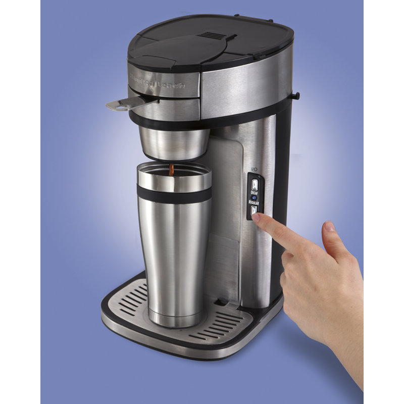 Travel mug with grounds. Hamilton beach scoop single serve coffee maker fast brewing stainless steel 49981a. The scoop single serve coffee maker stainless 49981 model.