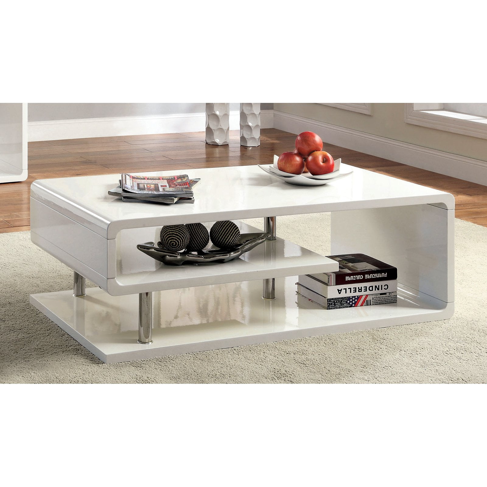 A curvaceous beauty the furniture of america rocca modern tier coffee table white features a sinuous shape that completes your modern living space perfectly. A curvaceous beauty the furniture of america rocca modern tier coffee table white features a sinuous shape that completes your modern living space perfectly. This coffee table comes in a high gloss white lacquer coating.