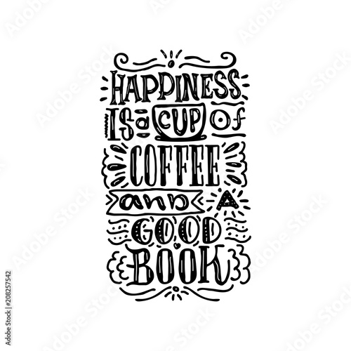Happiness Is A Cup Of Coffee And A Good Book Hand Drawn Lettering Poster Vector Illusration Buy This Stock Vector And Explore Similar Vectors At Adobe Stock Adobe Stock