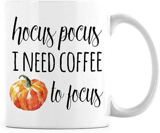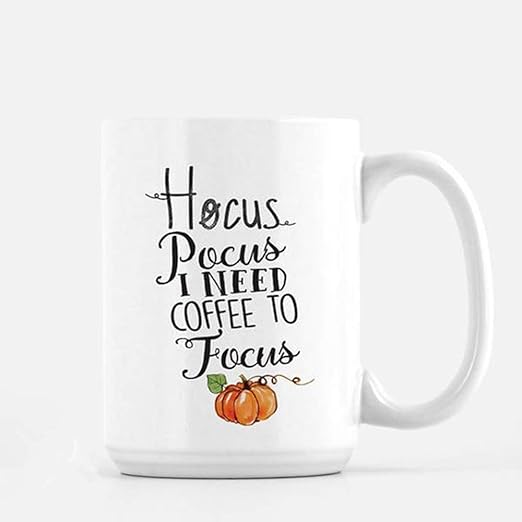 Hocus pocus i need coffee to focus funny coffee mug cute autumn halloween cup for men women best friend sister her 11 oz tea cup white visit the gelid store. 100 white ceramic. It makes a great halloween gift for any coworker best friend or even a gift for yourself.