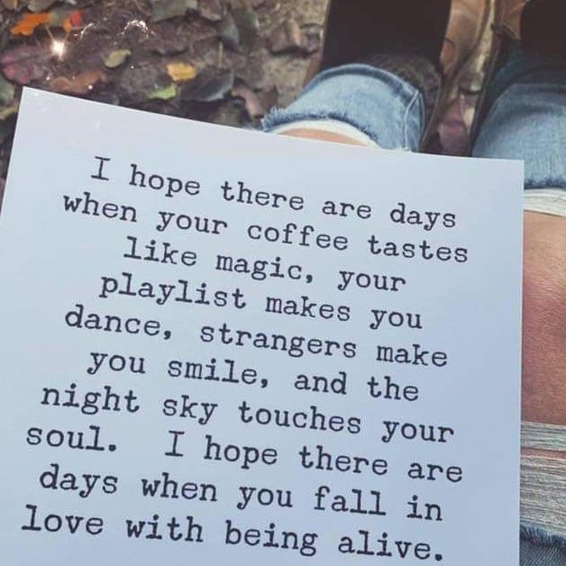 I hope there are days when your coffee quote. Contentment with whatever you have in life is everything to feel pleasure. I hope there are days when your coffee tastes like magic your playlist makes you dance strangers make you smile and the night sky touches your soul. I hope there are days when you fall in love with being alive.