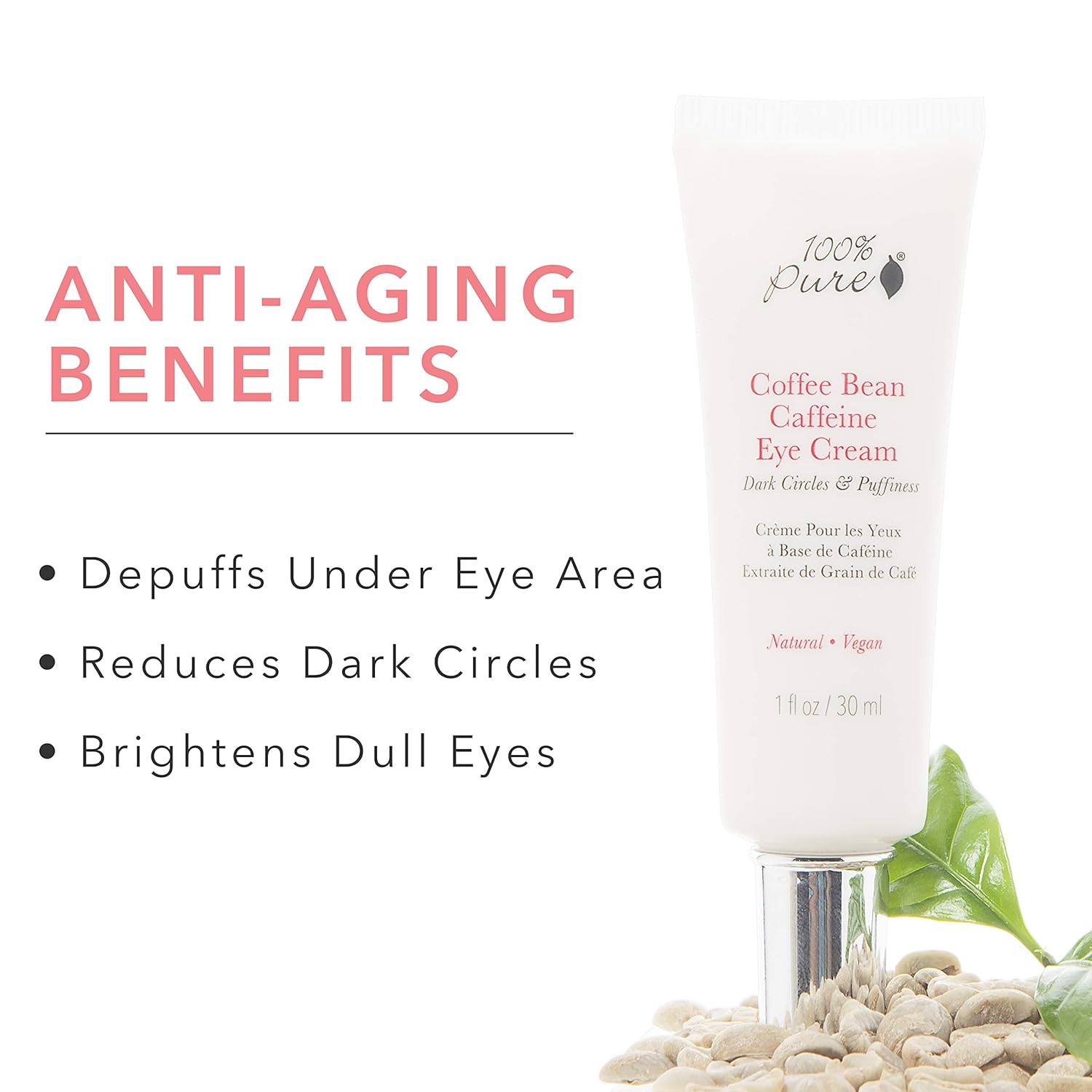 100 pure coffee bean caffeine eye cream 1 fl oz. This item 100 pure coffee bean caffeine eye cream 03 oz anti inflammatory brightens dark circles concentrated with potent anti aging vitamins antioxidants and nourishing rosehip oil essynaturalsanti aging rapid reduction eye cream visibly and instantly reduces wrinkles under eye bags dark circles in 120 seconds. 100 pure coffee bean caffeine eye cream for wrinkles anti aging dark circles under eye treatment for eyelids and under eye area 1 fl oz by 100 pure size. 1 fl oz change.