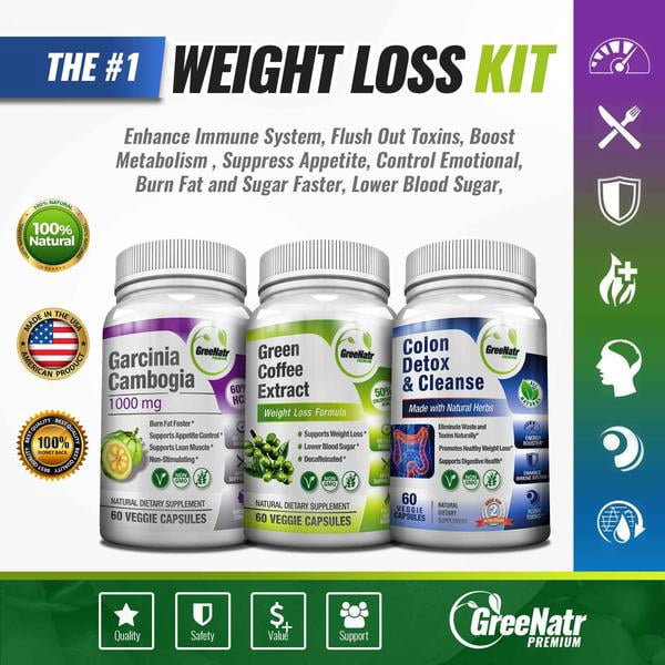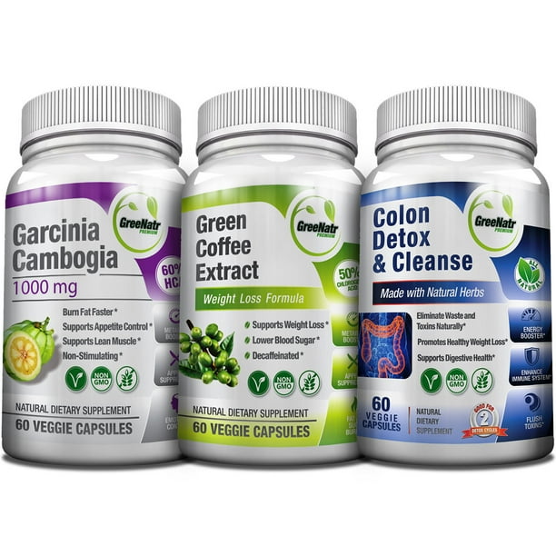Greenatr 3x Weight Loss Bundle Pure Garcinia Cambogia Green Coffee Bean Extract And Colon Detox Walmart Com Walmart Com