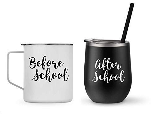 Amazon Com Wine Tumbler Coffee Mug Before And After School Mug And Wine Tumbler Set Teacher Gifts Handmade