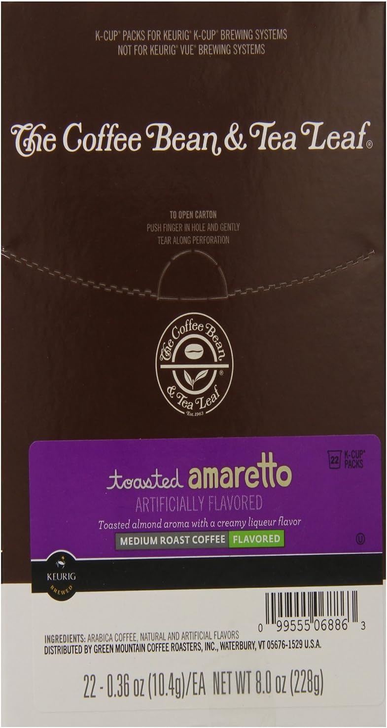 Coffee bean and tea leaf toasted amaretto k cups. Cbtl toasted amaretto toasted almond aroma with a creamy liqueur flavor for keurig k cup brewers only 22 k cups k cups medium roast see more product details. 20 count cbtl variety k cup by the coffee bean tea leaf costa rica viennese cafe 63 roast toasted amaretto by the coffee bean tea leaf. 31 out of 5 stars 6 ratings.