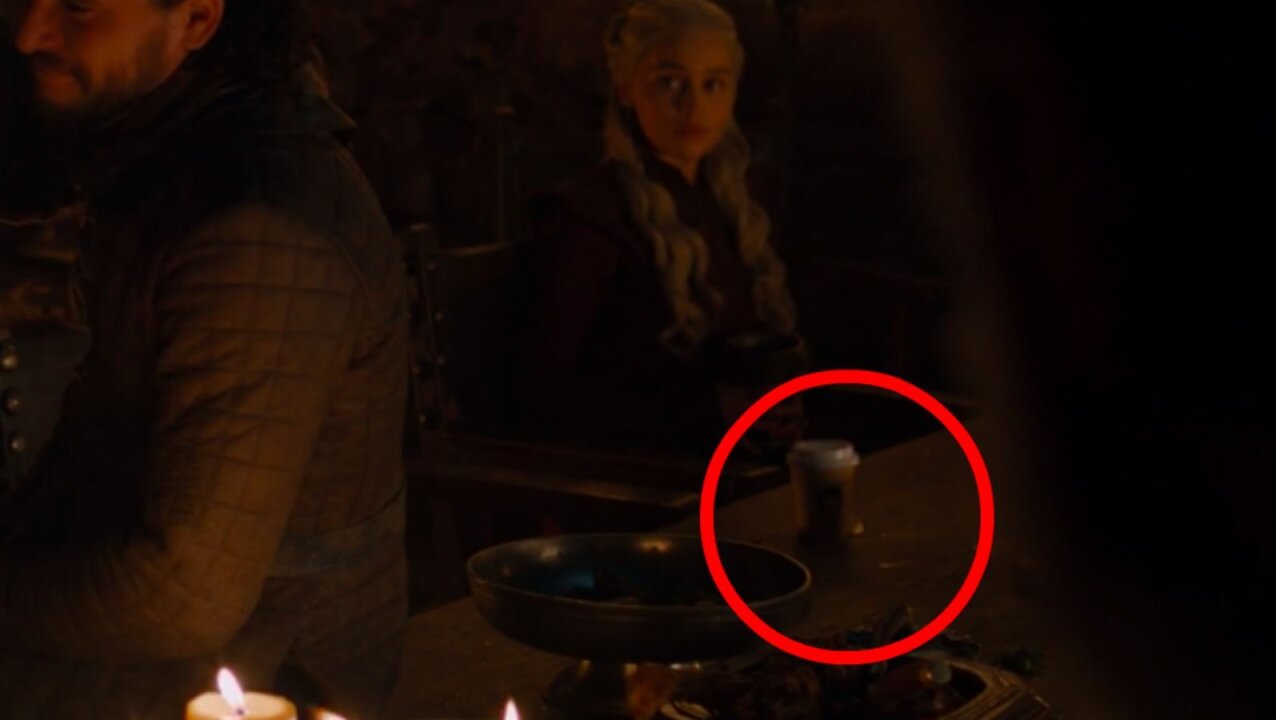Fans of the emmy award winning fantasy series took to twitter to point out the coffee cup blunder in the 17th minute of the 78 minute episode and slam the shows creators for the flub. In sunday nights episode of game of thrones viewers noticed a shot in which a to go coffee cup was left on a table in front of daenerys targaryen.