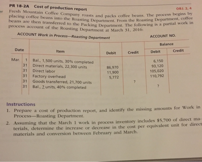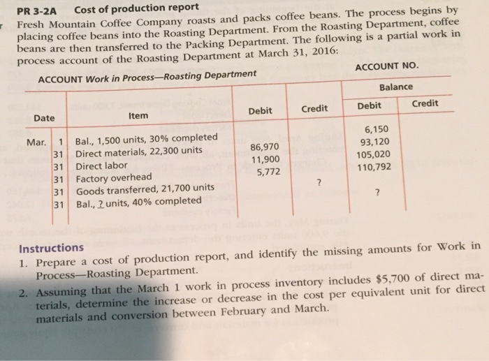 Fresh mountain coffee company roasts and packs coffee beans. The following is a partial work in process account of the roasting department at march 31 2016. The following is a partial work in process account of the roasting department at march 31 2016.