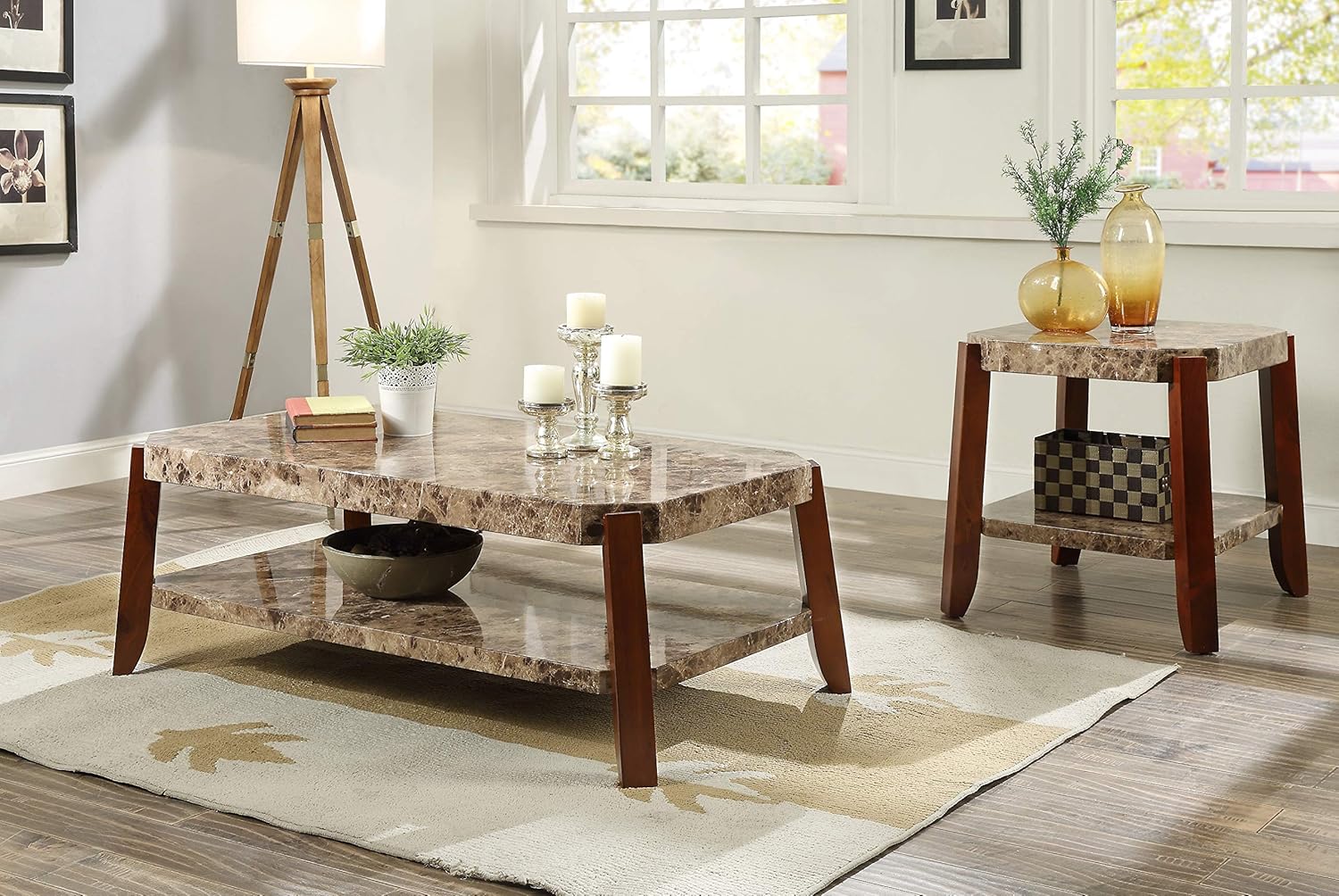 Amazon Com Acme Finely Light Brown Faux Marble Coffee End Table Set Table Chair Sets