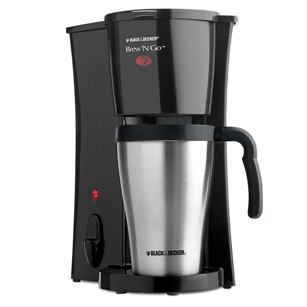 Thermal mug that fits most car cup holders. Blackdecker brew n go personal coffeemaker quickly and conveniently brews a 15 ounce coffee into the included stainless steel travel mug that fits most car cup holders. Black decker single serve coffee maker item.