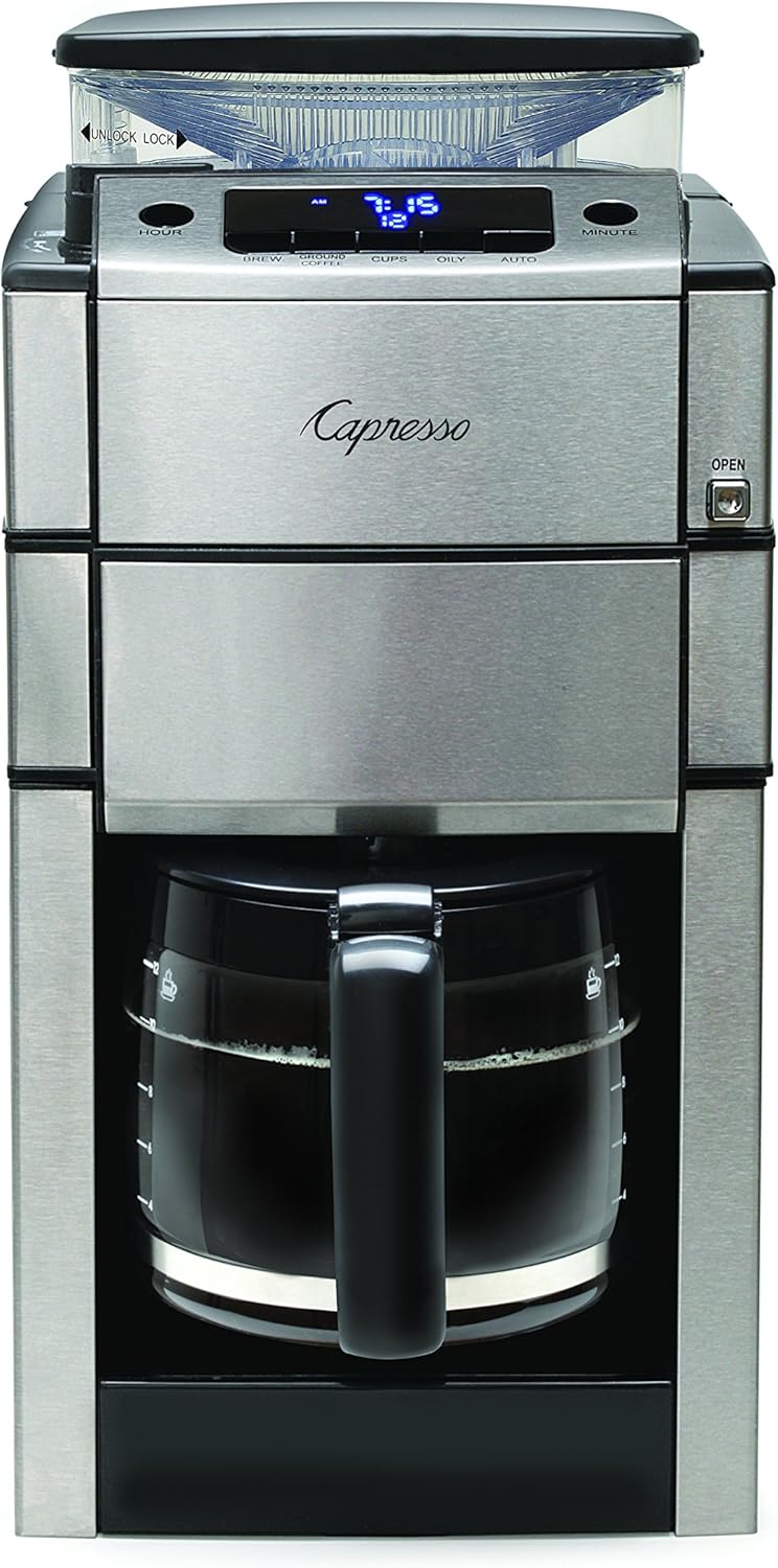 Amazon Com Capresso 464 05 Coffeeteam Gs 10 Cup Digital Coffeemaker With Conical Burr Grinder Glass Carafe Drip Coffeemakers Kitchen Dining
