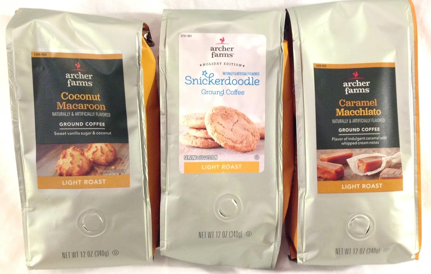Amazon Com Archer Farms Ground Coffee Holiday Flavored Edition 3 Pack Gift Bundle Set 12 Ounce Bags Coconut Macaroon Mild Roast Snickerdoodle Caramel Macchiato Light Roast 1 Ea Grocery Gourmet Food