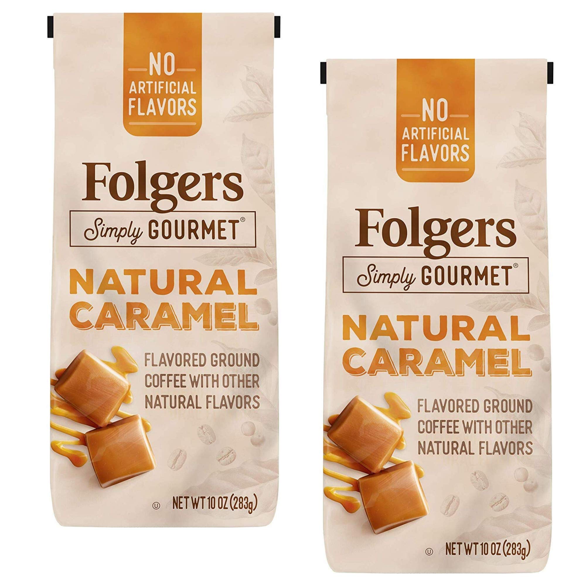 Contains 1 10 ounce bag of folgers simply gourmet natural ground coffee naturally flavored coffee with no artificial flavors a perfect blend of 100 premium arabica coffee beans and natural flavoring pre ground for easy brewing roasted to perfection ground coffee combined with natural caramel flavor for a decadent taste and aroma. Naturally flavored coffee with no artificial flavors. Take a moment to satisfy your cravings for a.