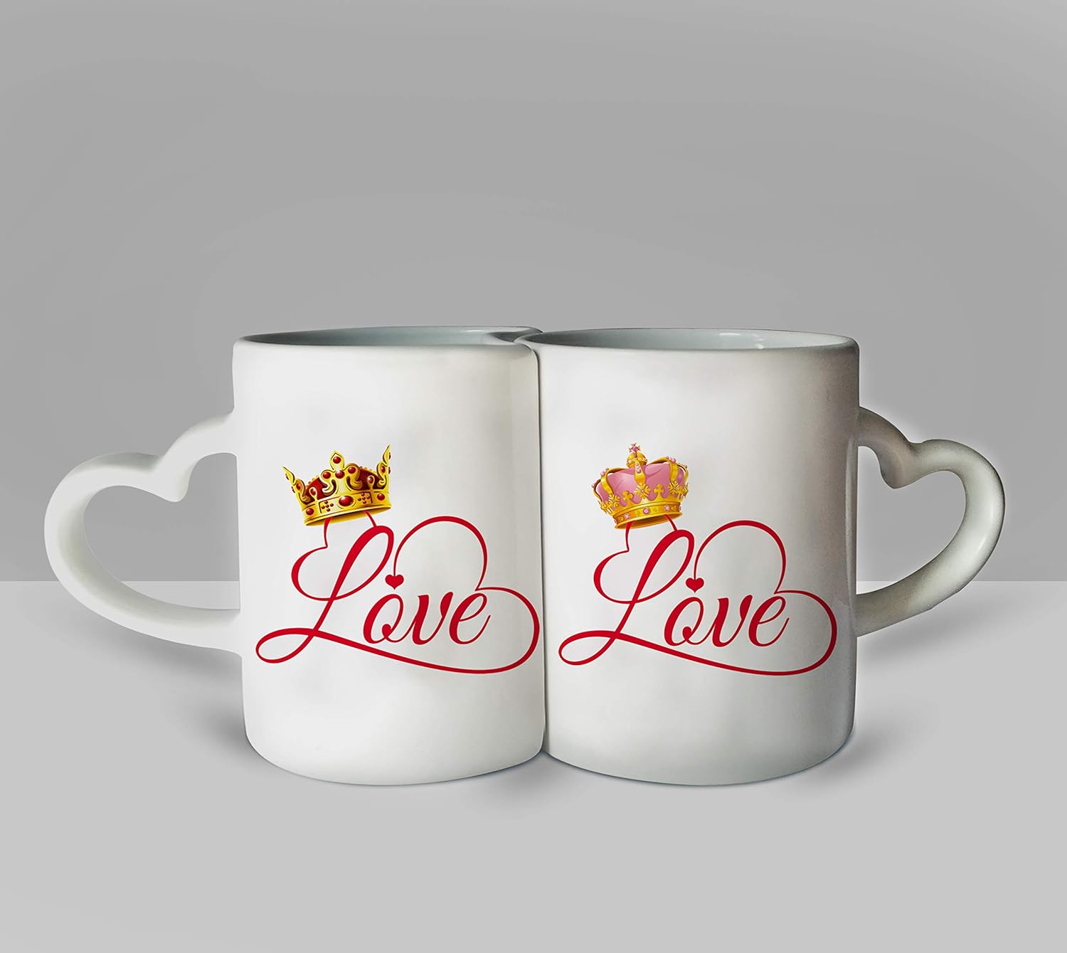 Buy Maanvee King Queen Ceramic Couple Coffee Mugs Heart Shaped Handle Multicolour Set Of 2 Online At Low Prices In India Amazon In