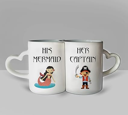 Buy Maanvee His Mermaid Her Captain Ceramic Couple Coffee Mugs Heart Shaped Handle Multicolour Set Of 2 Online At Low Prices In India Amazon In
