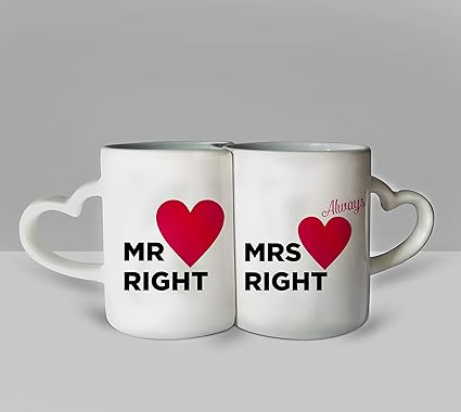 Buy Maanvee Enterprise Mr And Mrs Right Ceramic Couple Coffee Mugs With Heart Shaped Handle Multicolour Set Of 2 Online At Low Prices In India Amazon In