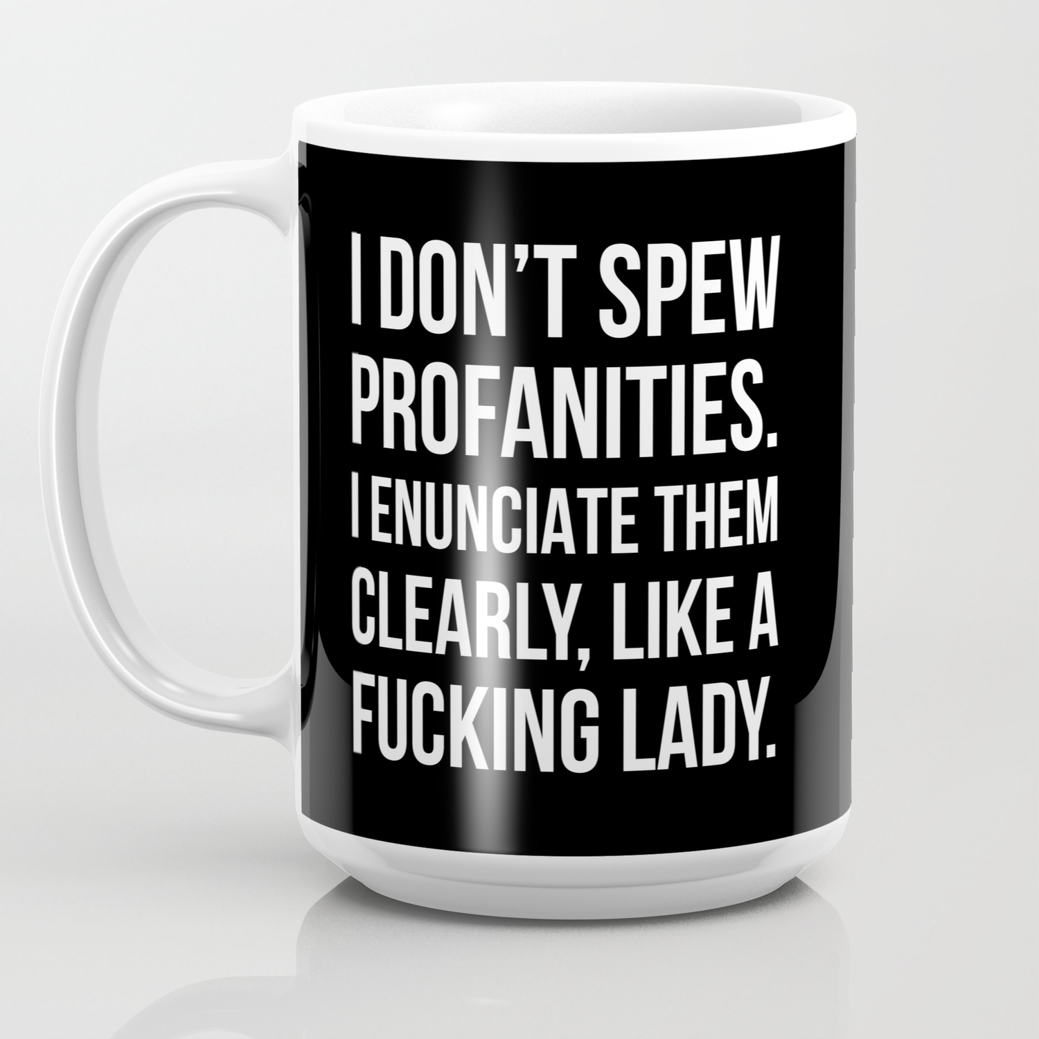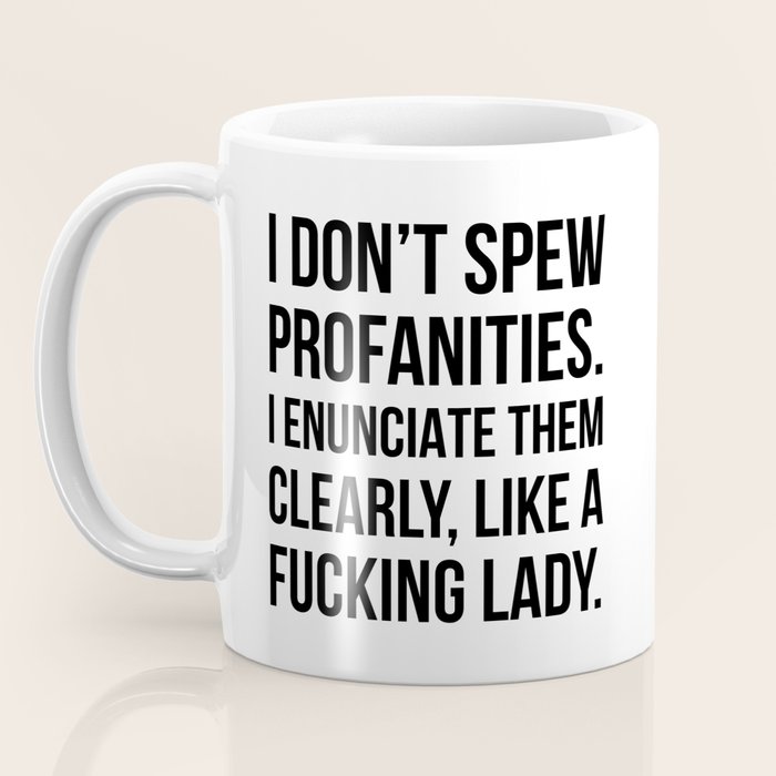 I don t spew profanities i enunciate them coffee mug. I do not spew profanities i enunciate them clearly like a fucking lady. Dishwasher and microwave safe your choice of 11oz or 15oz mug. Get it as soon as wed aug 19.