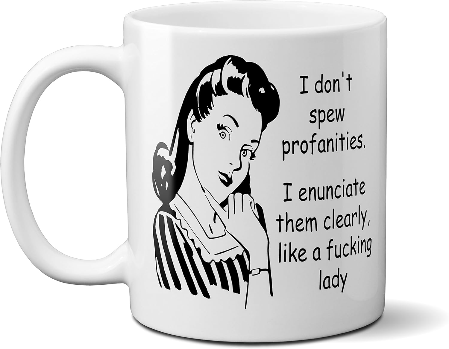 Amazon Com I Don T Spew Profanities I Enunciate Them Clearly Like A Lady Mug 11 Oz Ceramic White Coffee Mugs New Year Gift Ideas Nice Presents With Humor Love Gifts Kitchen Dining