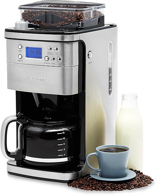 Andrew james premium filter coffee maker with grinder hd buy this in amazon. With an integrated grinder and a 24 hour programmable timer our coffee maker guarantees you the freshest possible coffee exactly when you need it and exactly how you like it. How big is your caffeine craving.