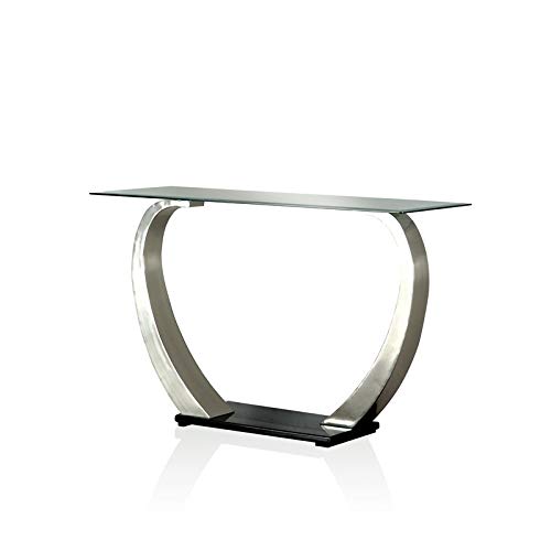 The curves of the base are contrasted by the straight lines and gleaming chrome of the supports. Furniture of america navarre glass top console table in satin plated and black by furniture of america. Furniture of america underwood open shelf coffee table.