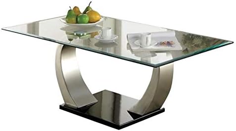 Amazon Com Furniture Of America Navarre Stainless Steel Coffee Table Satin Plated And Black Furniture Decor