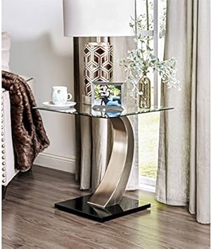 Amazon Com Furniture Of America Navarre Glass Top End Table In Silver And Black Furniture Decor