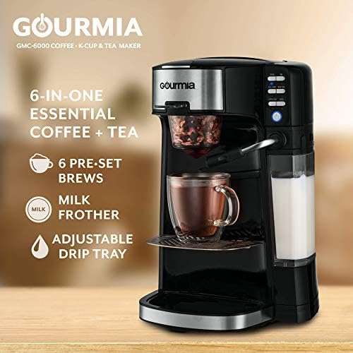 Coffee Machine Gourmia Gcm6000 6 In 1 Single Serve Coffee Maker And Milk Frother And Steamer Use K Cups Coffee Grinds Or Tea Leaves One Touch Buttons For Lattes And