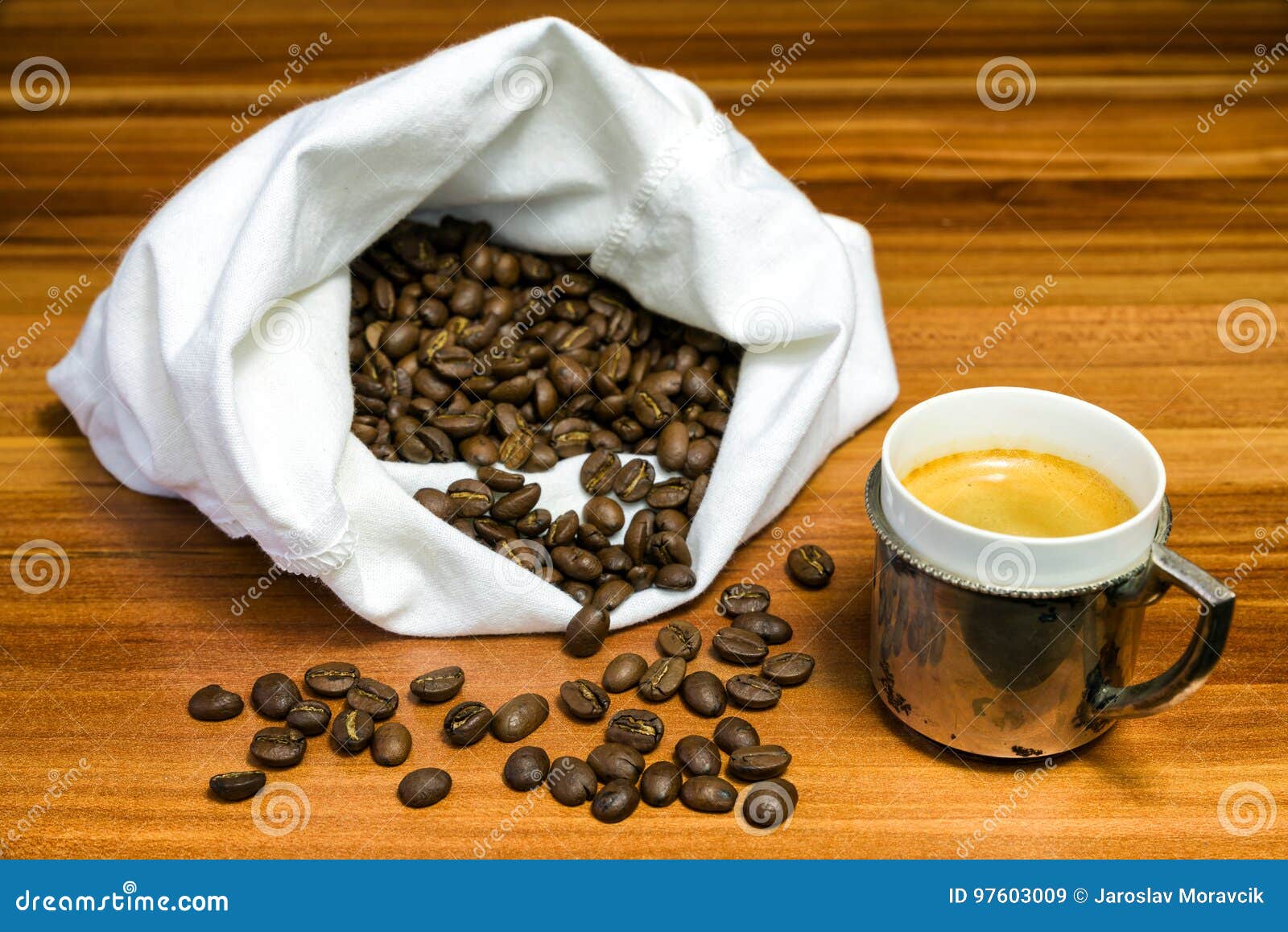 Cup Of Coffee And Bag Of Beans At Backrounds Stock Image Image Of Beans Seed 97603009