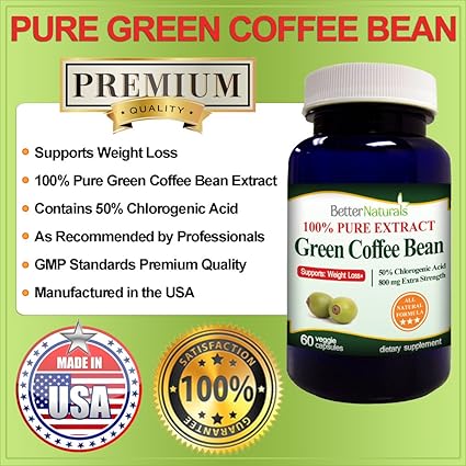 Amazon Com 100 Pure Green Coffee Bean Extract 50 Chlorogenic Acid 800mg 60 Capsules Extra Strength Weight Loss Dr Oz Diet All Natural Better Naturals Health Personal Care