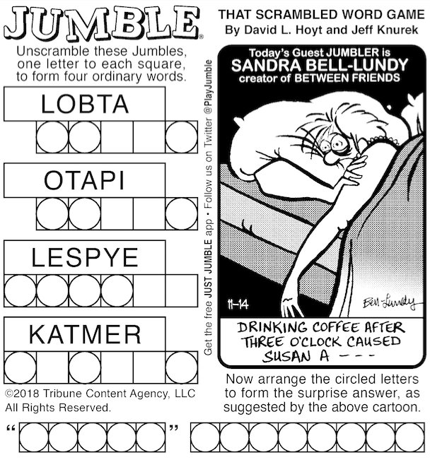 Daily Jumble November 14 2018 Drinking Coffee After Three O Clock Caused Susan A Daily Games Answers