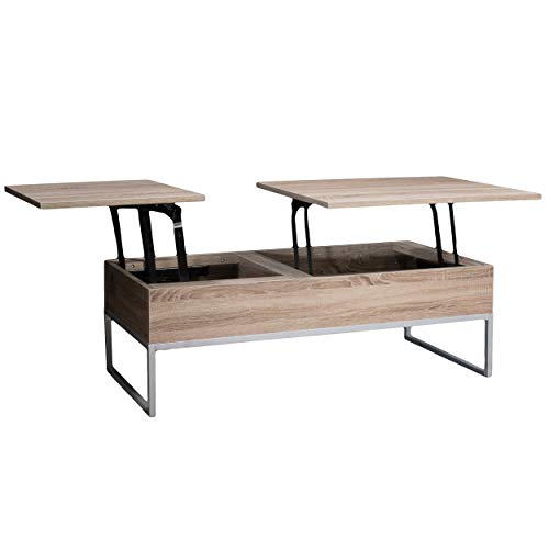 Elliot wood lift top storage coffee table christopher knight home. Crafted from veneer wood with a steel tub frame this table features two solid sections that lift toward you to conveniently hold your laptop or dinner. Christopher knight home lift functional coffee table dark sonoma 36 out of 5 stars 14. With ample storage space underneath the top this table is sturdy and long lasting.