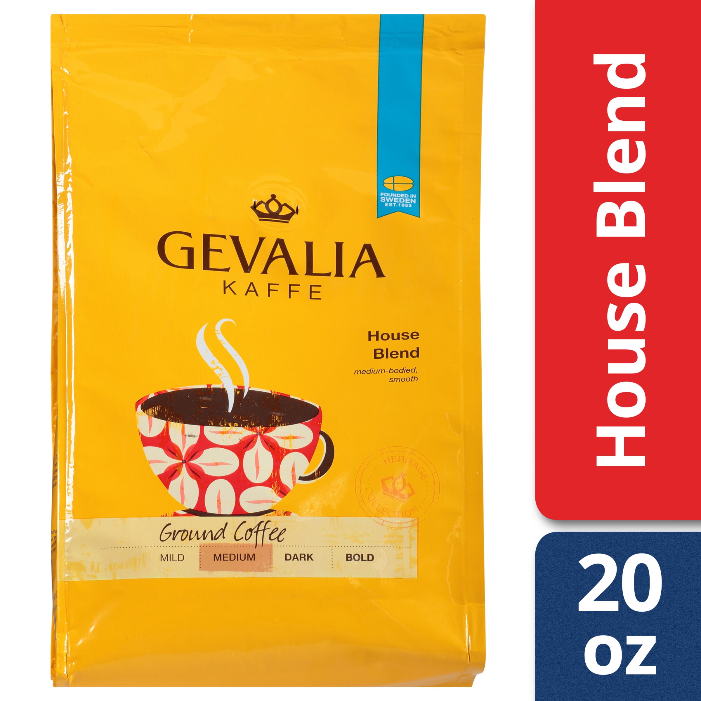Gevalia dark french roast ground coffee crafted in the swedish tradition fills your mug with rich and never bitter coffee. Product highlight gevalia house blend coffee medium roast ground 20 ounce bag. Gevalia medium roast house blend ground coffee crafted in the swedish tradition fills your mug with rich and never bitter coffee.
