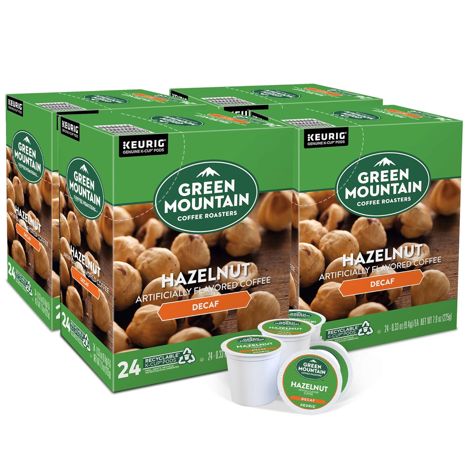 Green mountain coffee hazelnut decaf light roasted k cup portion pack for keurig k cup brewers 24 count. Free shipping on your first order shipped by amazon. Green mountain coffee roasters hazelnut single serve coffee k cup pod decaf 12 count pack of 6 packaging may vary 72 count.