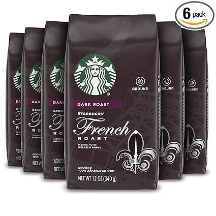 Amazon Com Starbucks Dark Roast Ground Coffee French Roast 100 Arabica 6 Bags 12 Oz Each Grocery Gourmet Food