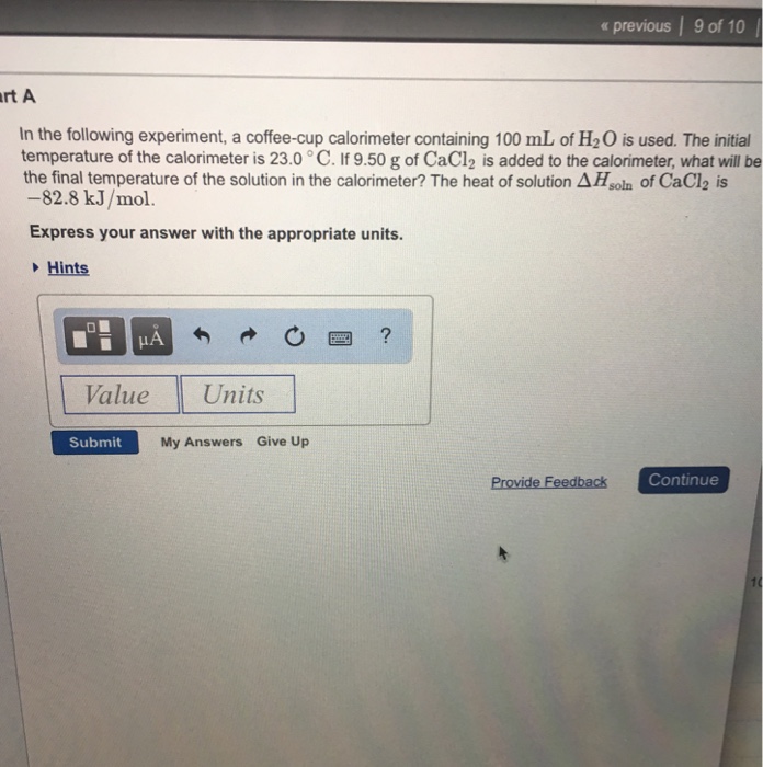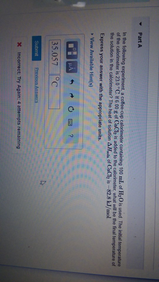 I got 40 but its incorrect. In the following experiment a coffee cup calorimeter containing 100 ml of h2o is used. Part a in the following experiment a coffee cup calorimeter containing 100 ml of h2o is used.