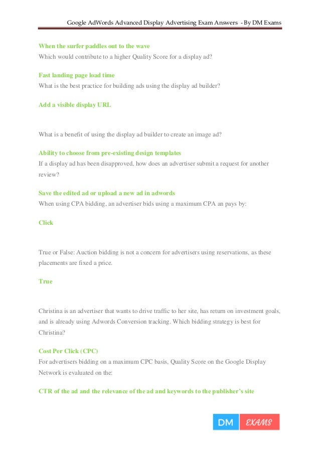 Google Adwords Display Advertising Exam Answers