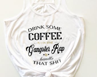 Buy drink coffee listen to gangsta rap and handle it by alexmichel91 as a art print canvas print classic t shirt sleeveless top framed print greeting card iphone case kids clothes lightweight hoodie lightweight sweatshirt long. Funny threadz womens raw edge 34 sleeve drink some coffee gangsta rap and handle it 2499 24.