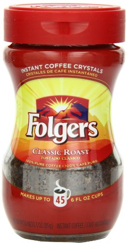 Contains 6 12 ounce easy open flip top jars of folgers classic roast instant coffee crystals delicious 100 pure folgers medium roast coffee ready in seconds no coffee maker required folgers instant coffee crystals can be mixed with hot water or milk makes up to 180 suggested strength 6 fl oz servings per canister. Although even the best instant coffee is no match for fresh brewed its acceptable to many of us who want a quick low cost pick me up. Ready in seconds no coffee maker required.