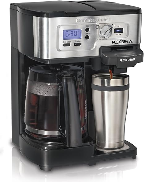 Amazon Com Hamilton Beach Flexbrew Coffee Maker Single Serve Full Pot Compatible With K Cup Pods Or Grounds Programmable Includes Permanent Filter Black 49950c Silver Kitchen Dining