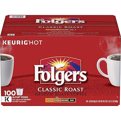 Folgers K Cups Classic Roast Coffee 0 28 Ounce Pack Of 100 Amazon Com Grocery Gourmet Food