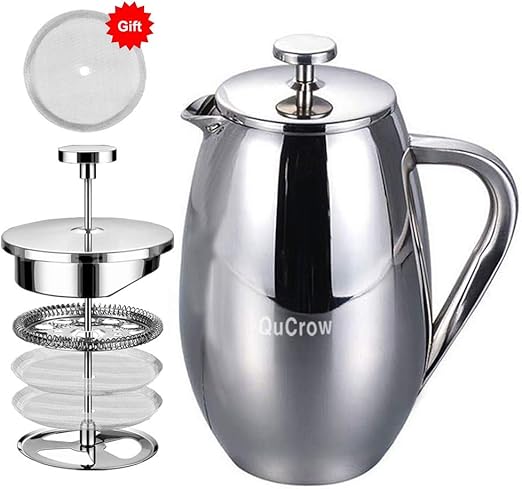 Amazon Com Qucrow French Press Coffee Maker 18 10 Stainless Steel Coffee Press Double Wall Insulated French Press 34 Fl Oz 1 Liter Kitchen Dining