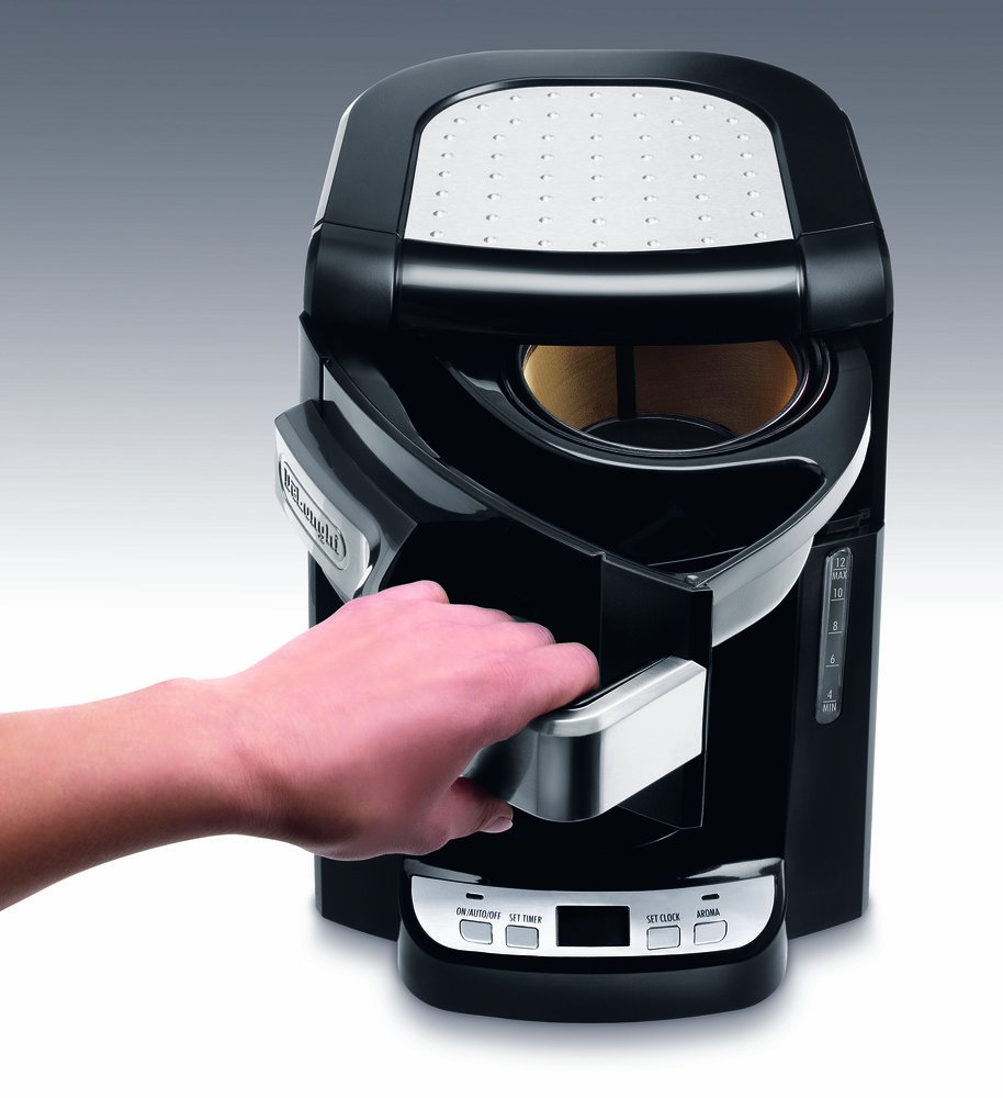 The patented complete front access design allows you to add water and coffee grounds easily and without the hassle of moving the machine. Delonghi dcf2210ttc 10 cup thermal carafe drip coffee maker black by delonghi.