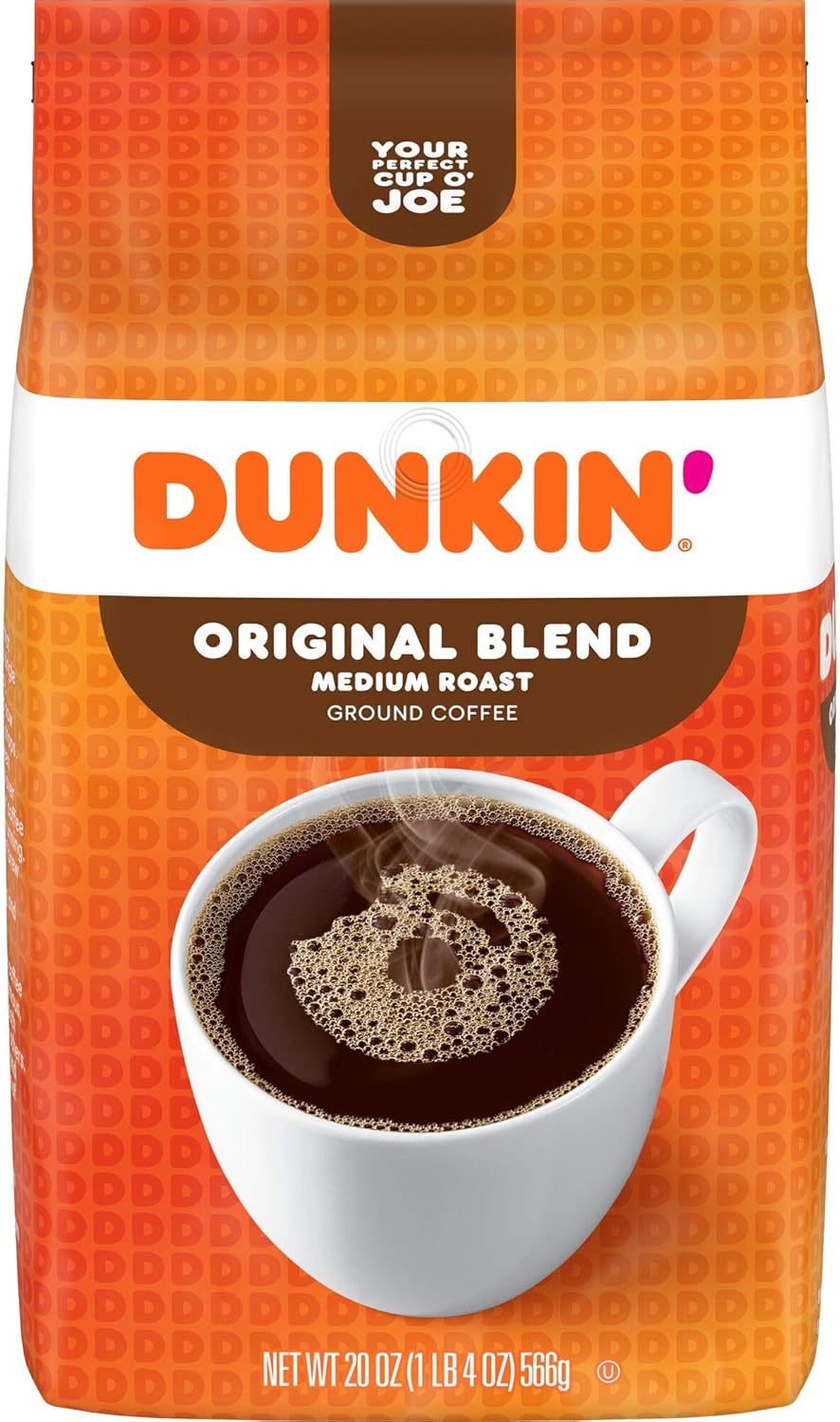Dunkin donuts original blend medium roast ground coffee 20oz. More to consider from our brands. Smooth and flavorful original blend delivers our signature taste and easy drinkability in every cup. Ground coffee is ready for brewing medium roast coffee with original blend flavor.