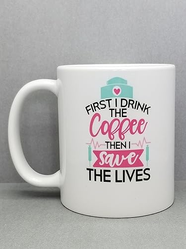 Amazon Com First I Drink The Coffee Then I Save The Lives Sublimated Nurse Mug 2 Sided 11 Oz Handmade