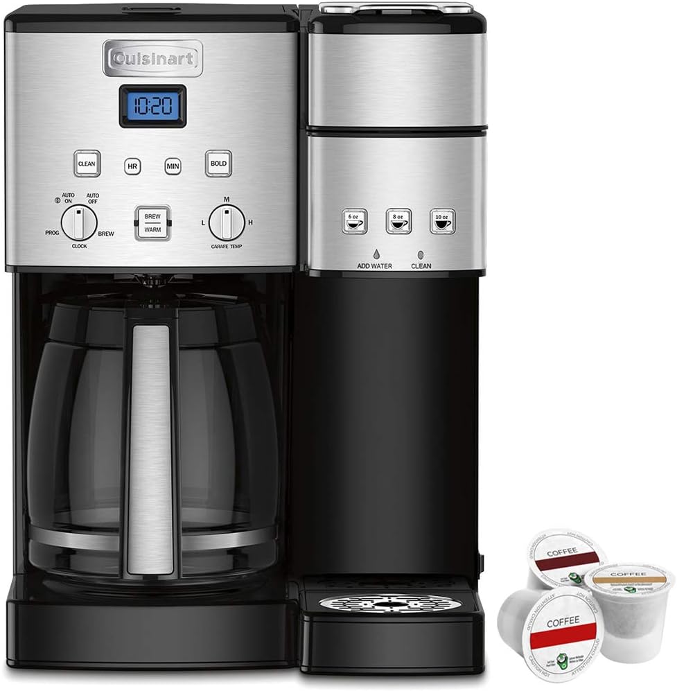 Amazon Com Cuisinart 12 Cup Coffee Maker And Single Serve Brewer Stainless Steel Ss 15 With Single Serve Pod Sample Pack Kitchen Dining